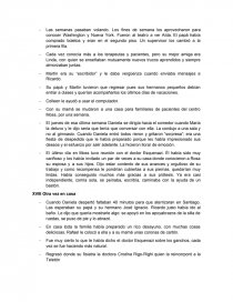 Este libro fue escrito por Daniela Garcia Palomer nacida en 1980 Santiago-Chile estudio en el colegio Andree english school y se graduo de medicina en la Universidad catolica ella es la unica mujer de tres hermanos. FPatricia McDonald le dice CUANDO ALGO NO TE RESULTE NO TE AMARGE. Llevaba una vida dinmica y alegre entre sus estudios y las mltiples actividades deportivas que compartan con Ricardo su pololo desde hace ya cuatro aos.