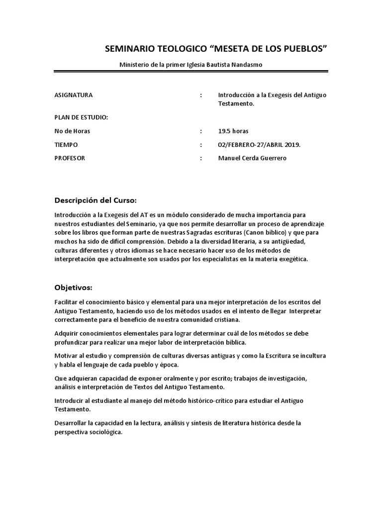 Silabo De Introduccion A La Exegesis Del At Hermeneutica Exegesis
